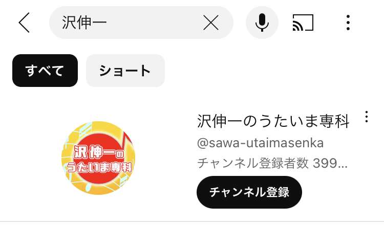 4.「沢伸一のうたいま専科」の(チャンネル登録)を押してください
